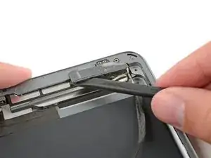 Как только клей будет перерезан, подденьте сторону логической платы, прилегающую к батарее, вверх от задней панели.