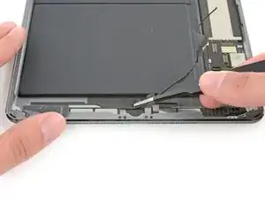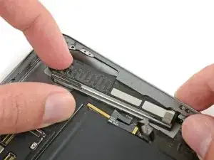 Вставьте новый медиатор и сдвиньте его к середине правого ребра iPad.