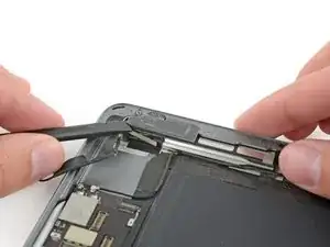 Вставьте медиатор обратно и сдвиньте его к верхнему правому углу устройства, чтобы полностью отделить верхний клей.