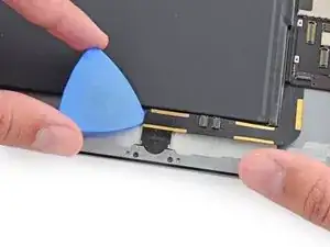 Просуньте медиатор под кнопку «Домой» и сдвиньте к нижнему правому углу, убедившись, что между дигитайзером и рамкой находится только острие медиатора.