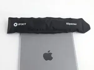 Дайте iOpener постоять не менее минуты, чтобы клей размягчился через заднюю панель.