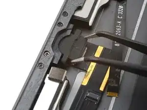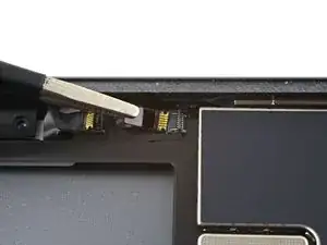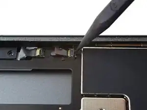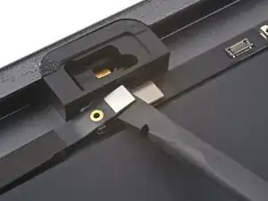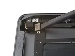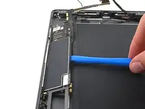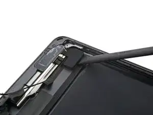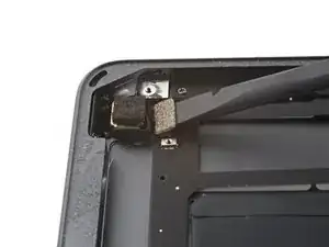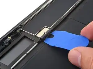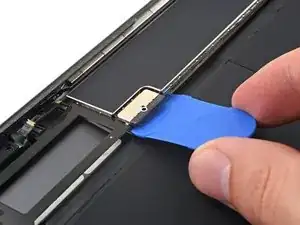 Поверните два пике для вскрытия на левых углах iPad, чтобы слегка приподнять дигитайзер, при этом отделяя оставшийся клей.