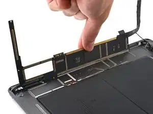 Шлейфы дисплея расположены примерно на половине расстояния от нижнего края iPad. Прекратите сдвиг, как только дойдёте до трёх дюймов от нижнего края iPad.