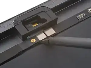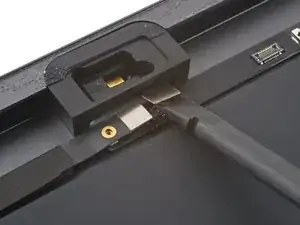 Вставьте новое пике для вскрытия и сдвиньте его к середине правого края iPad.