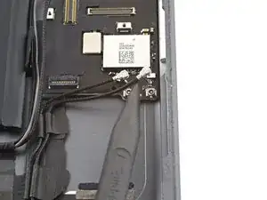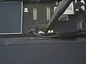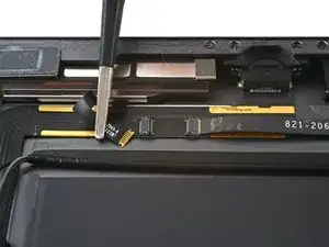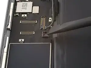 Вставьте открытую пластиковую лопатку под кабель зарядного порта рядом с портом и проведите её в сторону платы логики, чтобы разрезать клей.