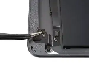Поверните медиатор вокруг верхнего правого угла iPad, чтобы отделить клей.