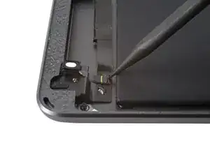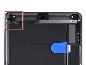 Вставьте медиатор снова и сдвиньте его к верхнему правому углу iPad, чтобы полностью отделить верхний клей.