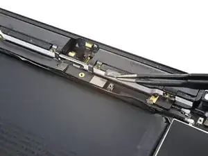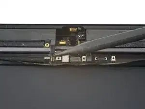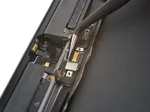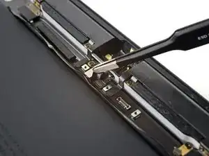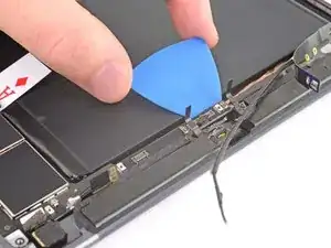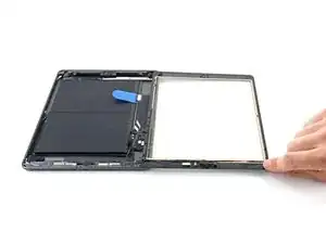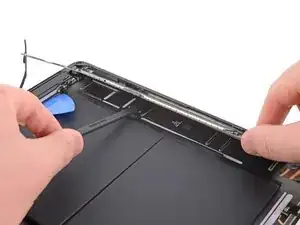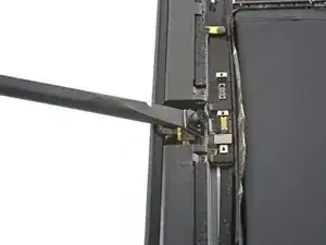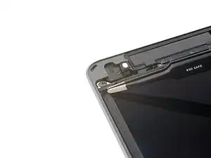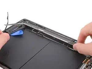 Поверните две открывающие лопатки в левых углах iPad, чтобы немного приподнять сенсор, отделяя последний клей в процессе.