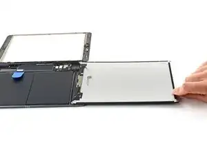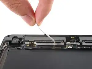 Вставьте лопатку снова и проведите ею к верхнему правому углу iPad, чтобы полностью отделить верхний клей.