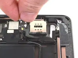 Нажмите на инструмент для eject-телефонов, чтобы извлечь лоток для SIM-карты.