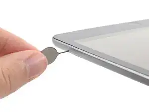 Вставьте инструмент для eject-телефонов, биту или выпрямленную скрепку в отверстие для SIM-карты.