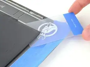 Вставьте пластиковую карточку как можно дальше под батарею, чтобы разрезать клей.