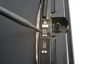 Поверните лопатку вокруг верхнего левого угла iPad, чтобы отделить клей.