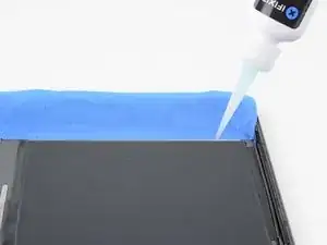 Нанесите несколько капель удалителя клея или изопропилового спирта высокой концентрации вдоль нижней кромки батареи.