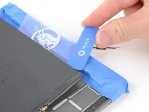 Вставьте новую открывающую лопатку и проведите ею к середине правого края iPad.