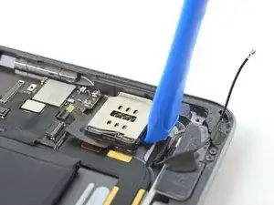 Сдвиньте инструмент для открытия под нижний край логической платы, чтобы разрезать часть клея, если ваша логическая плата не двигается.