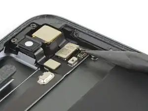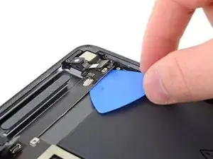 Вставьте приспособление для вскрытия под рычаг логической платы рядом с тыльной камерой.