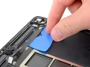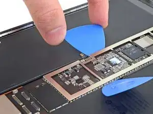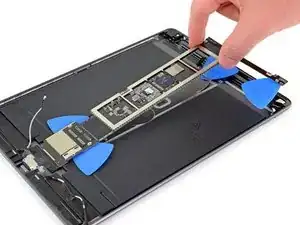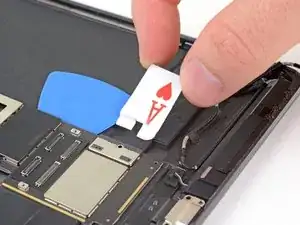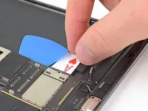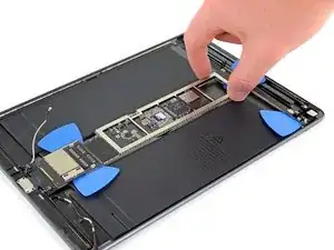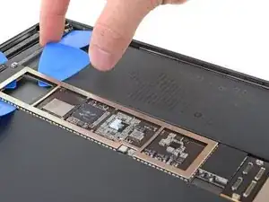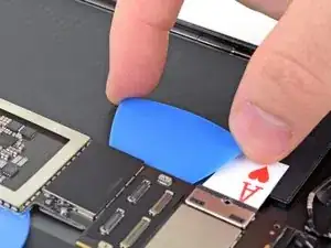 Просуньте медиатор вдоль левого края платы логики, пока не приблизитесь к кабелю Smart Connector.