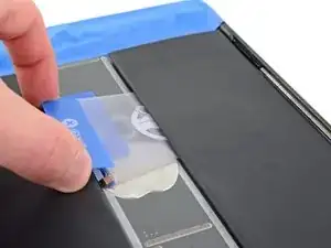 Просуньте медиатор вниз в сторону нижней части iPad, чтобы разрезать клей.