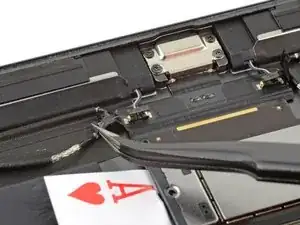 Используйте пинцет, чтобы отодрать ленту, покрывающую разъём правого динамика.
