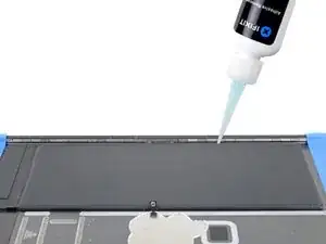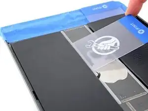 Проверьте функции iPad и установите предварительно вырезанные клеящие полосы на заднюю часть дисплея по нашему руководству по нанесению клея для дисплея перед окончательным запечатыванием.