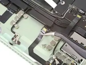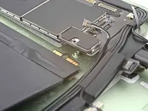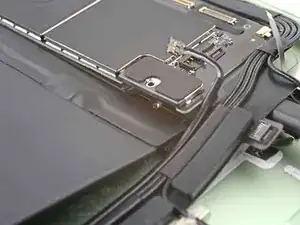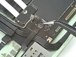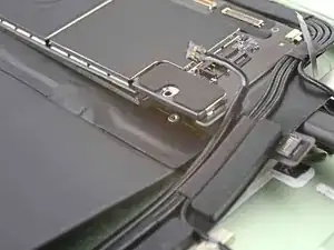 Используйте пинцет или пальцы, чтобы снять кронштейн кабеля дигитайзера.