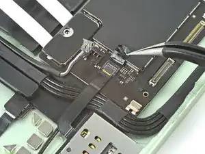 Повторите предыдущие два шага, чтобы отсоединить межсоединительный кабель нижней правой сотовой антенны.