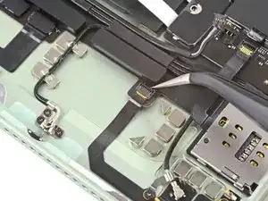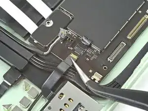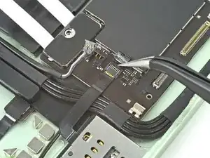 Используйте пинцет, чтобы снять ленту, закрывающую ZIF‑разъём считывателя SIM‑карты.