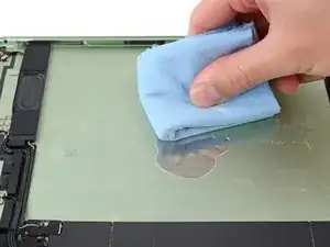Подоприте левую сторону iPad, чтобы изопропиловый спирт мог попасть под аккумулятор.