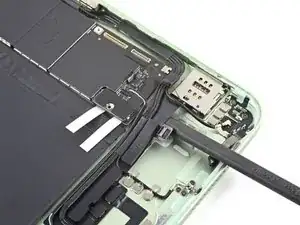 Используйте пинцет или пальцы, чтобы отлепить межсоединительный кабель нижней правой сотовой антенны к краю рамки.