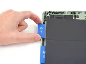 Правая грань iPad содержит магнитные элементы экрана, кабели дисплея и кабель дигитайзера. Эти компоненты легко повредить, если вставлять медиатор слишком глубоко.