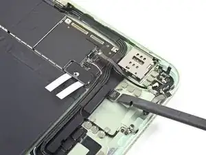Используйте пинцет или лопатку, чтобы приподнять защёлку ZIF‑разъёма считывателя SIM‑карты.