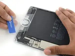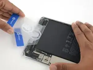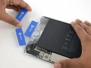 В следующих шагах вы будете разрезать клей под батареей и отрывать её от задней панели.