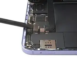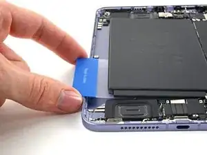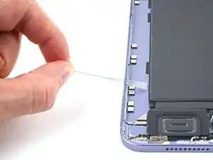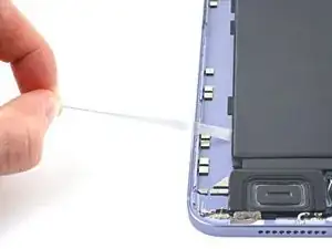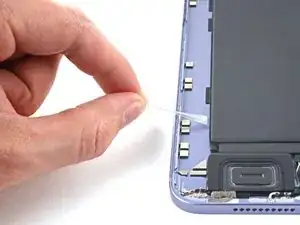 Если клеевая полоса порвётся, попытайтесь достать её пальцами или тупым пинцетом и продолжите тянуть — но не поддевать под аккумулятор.
