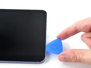Вставьте медиатор в зазор между рамкой и экраном.