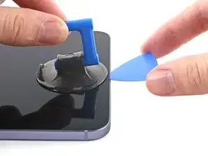 Поднимите экран при помощи присоски, чтобы создать небольшой зазор между экраном и рамкой.