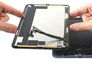 Не пытайтесь полностью снять экран пока; он всё ещё соединён с рамкой гибким кабелем.