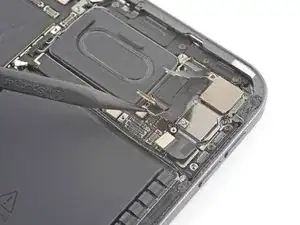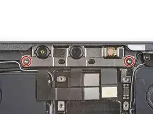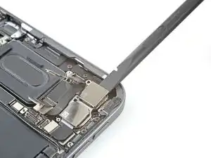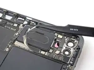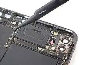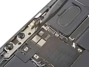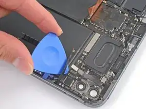 Используйте медиатор, чтобы приподнять верхнюю правую ветвь платы логики рядом с объективами задней камеры.
