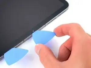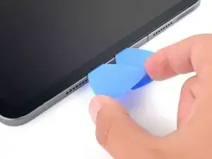 Вставьте новый инструмент для поддевания слева от порта USB-C.