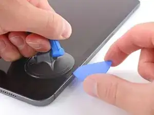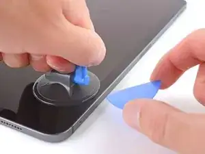 Потяните присоску вверх с равномерным, постоянным усилием, чтобы создать щель, достаточную для вставки лезвия для открытия.