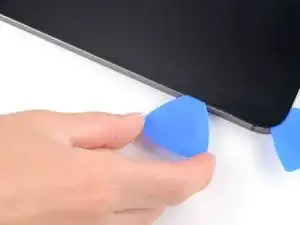 Вставьте инструмент поддевания под углом 45˚ прямо над нижним левым углом.