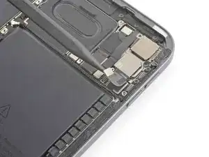 Удалите старый клей с заднего корпуса и с нижней части платы логики с помощью пинцета и высококонцентрационного изопропилового спирта, применяя безворсовую ткань по мере необходимости.