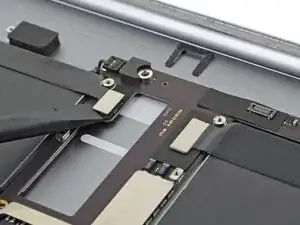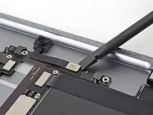 Не тяните кабели силой. Если кабели кажутся застрявшими, примените нагретый iOpener или немного изопропилового спирта, чтобы ослабить клей.