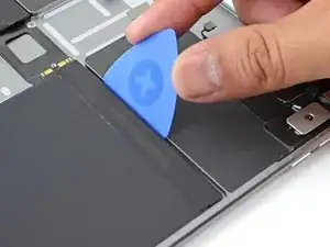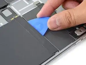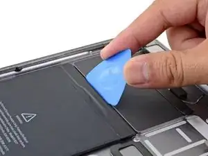 Проведите лопаткой вдоль верхнего правого края батареи, чтобы ослабить клей.