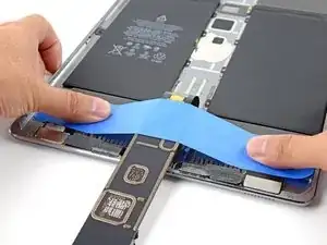 При обратной сборке приклейте к гибкому кабелю ленту Tesa или двустороннюю ленту, чтобы закрепить его на раме iPad.