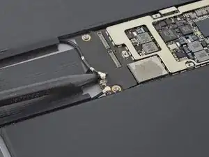 Оба антенных кабеля приклеены к раме. Вы можете ослабить клей с помощью нагретого iOpener или некоторого количества изопропилового спирта высокой концентрации (>90%).