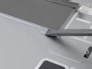 На этом этапе вы рассекли большую часть клея, удерживающего экран. Используйте монтажную лопатку, чтобы аккуратно рассечь оставшийся клей вдоль кромок, пока экран не освободится. Если какие‑то участки упорствуют, нагрейте область iOpener, чтобы ослабить клей.