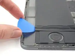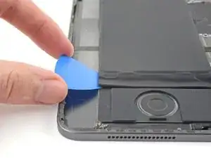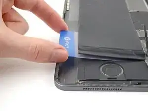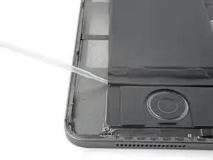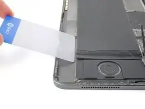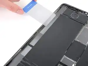 Передвигайте лопатку вниз к нижней части iPad, чтобы отделить оставшийся клей.