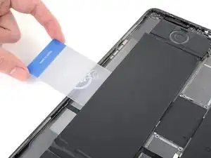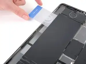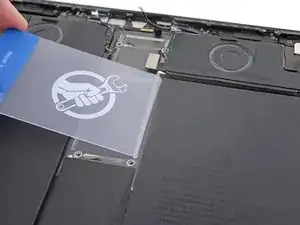 Проведите пластиковую карточку под правой платой батареи, чтобы отделить её клейкое вещество.