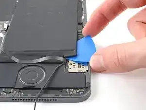 Вставьте новую лопатку под логической платой напротив разъема батареи.